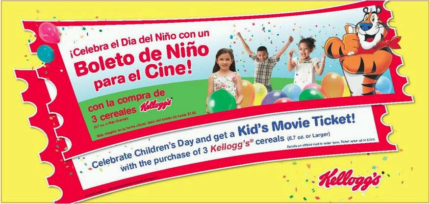 En este Día del Niño, Kellogg’s le está dando a las mamás y sus hijos la oportunidad de celebrar el Día del Niño con un Viaje al Cine Gratis. Para ganar, solo tienes que comprar 3 cereales Kellog’s (8.7 oz o más) o Waffles Eggo (con 6 o más) y recibirás un entrada de niños para el cine (hasta $7.50) enviando tu forma por correo. La forma puede ser encontrada en los paquetes especiales de Frosted Flakes y Cocoa Krispies. Recuerden que el desayuno es la comida más importante del día. Si quieren mas información, pueden entrar a http://www2.kelloggs.com/espanol/.