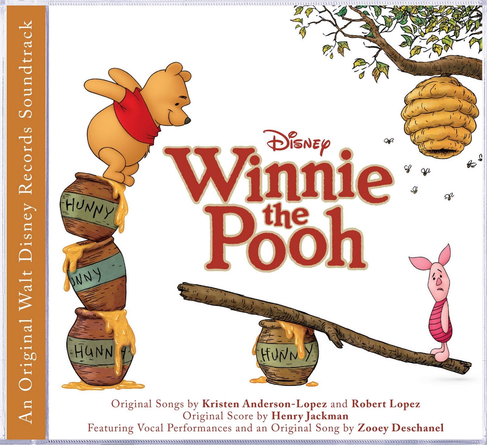 El CD de la película de Winnie the Pooh incluye música de la nueva producción de Disney soundtrack, con una canción original de Zooey Deschanel, además de la reedición especial del tema principal de “Winnie the Pooh” . Cabe mencionar que orgullosamente, esta producción, fue inspirada por los compositores latinos, Kristen Anderson-López y Roberto López. Y estará diisponible a partir del 15 de julio.