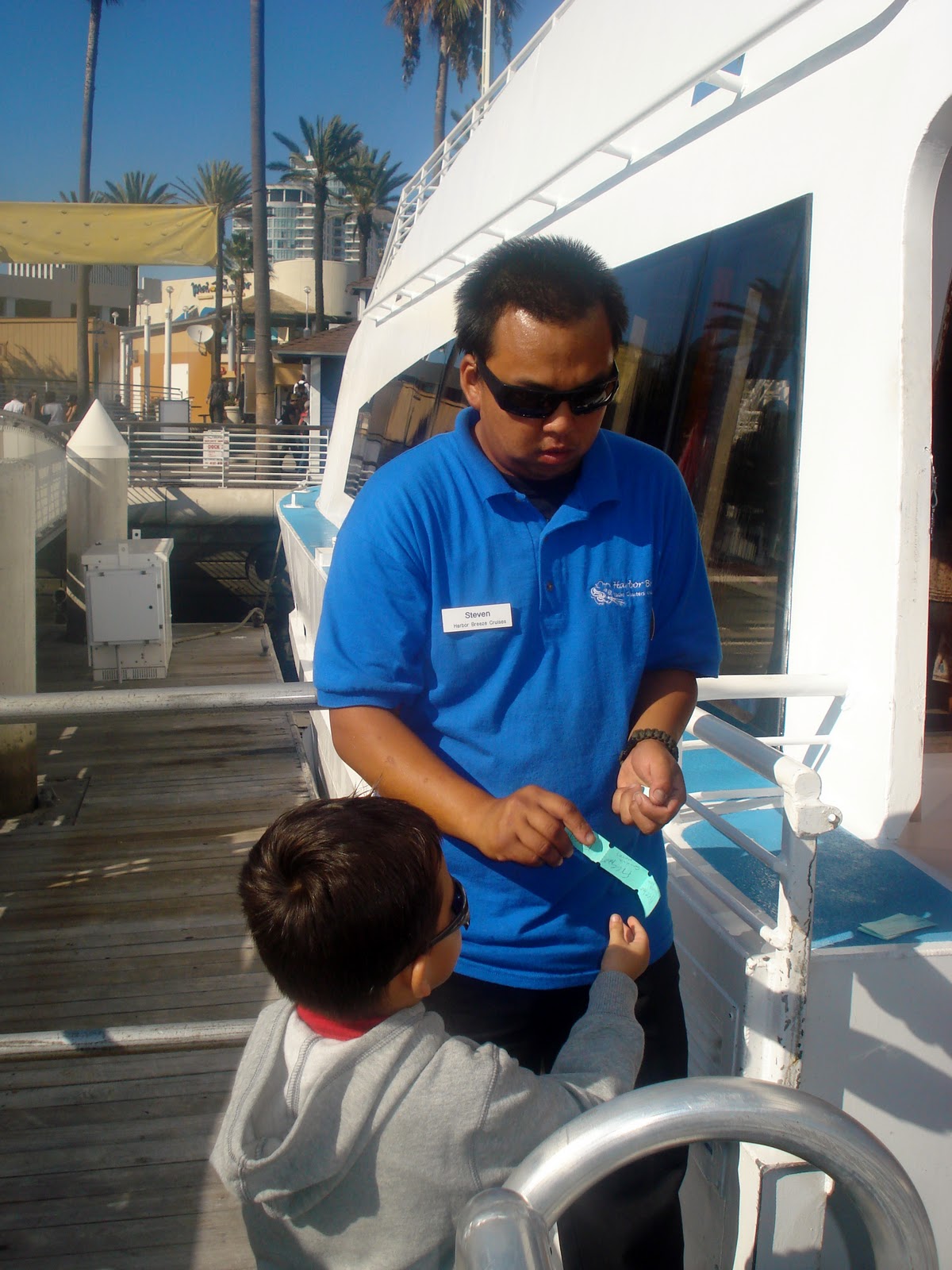 La aventura se esta llevando a cabo todos los días en Long Beach desde el mes de septiembre en dos horarios: 111:30 y 3:00. Nosotros decidimos tomar nuestra aventura a las 3:00 de la tarde, para aprovechar la puesta del sol y disfrutar aun mas del paseo. Son tres horas y media las que dura este viaje el cual parte del Dock #2 a unos cuantos pasos del Acuario. Así que con cámara y emocionados partimos a nuestro encuentro emocionados por conocer de cerca a la ballena azul.