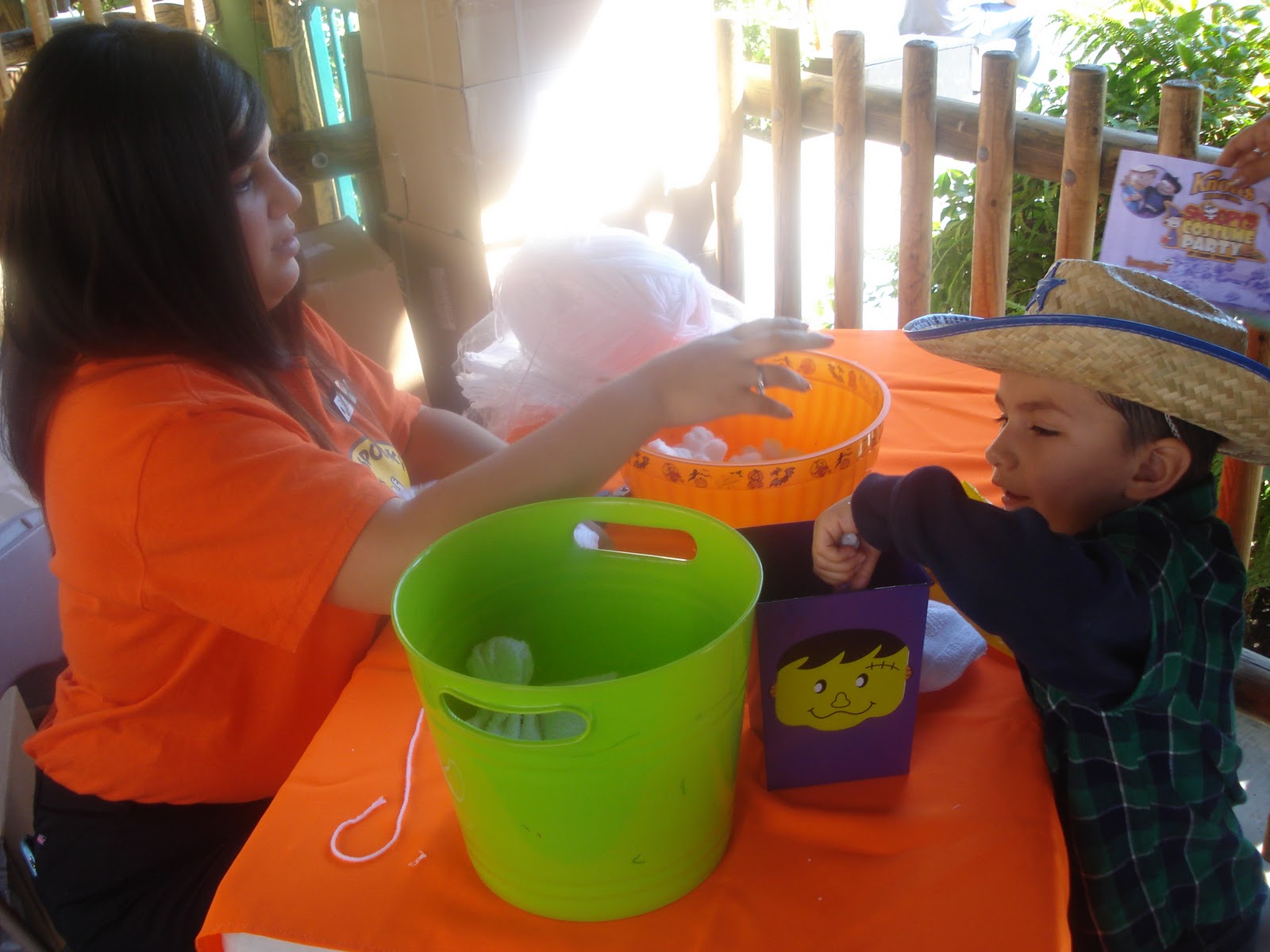 Todo era un algarabía, chicos y grandes revisaban los mapas que nos dieron para ubicar los estaciones de dulces, donde los pequeños podrían realizar el tradicional “trick or treat” .  Entre las actividades a realizar visitamos el “Camp Spooky Crafts”, en donde los niños elaboraban un fantasma a su gusto. Después emprendimos el camino hacia el “Great Pumkin Hay-maze”,  en donde seguimos un divertido laberinto lleno de bloques de paja y calabazas que nos llevó hacia “Linus’s Foam-tastic Pumpkin Patch.