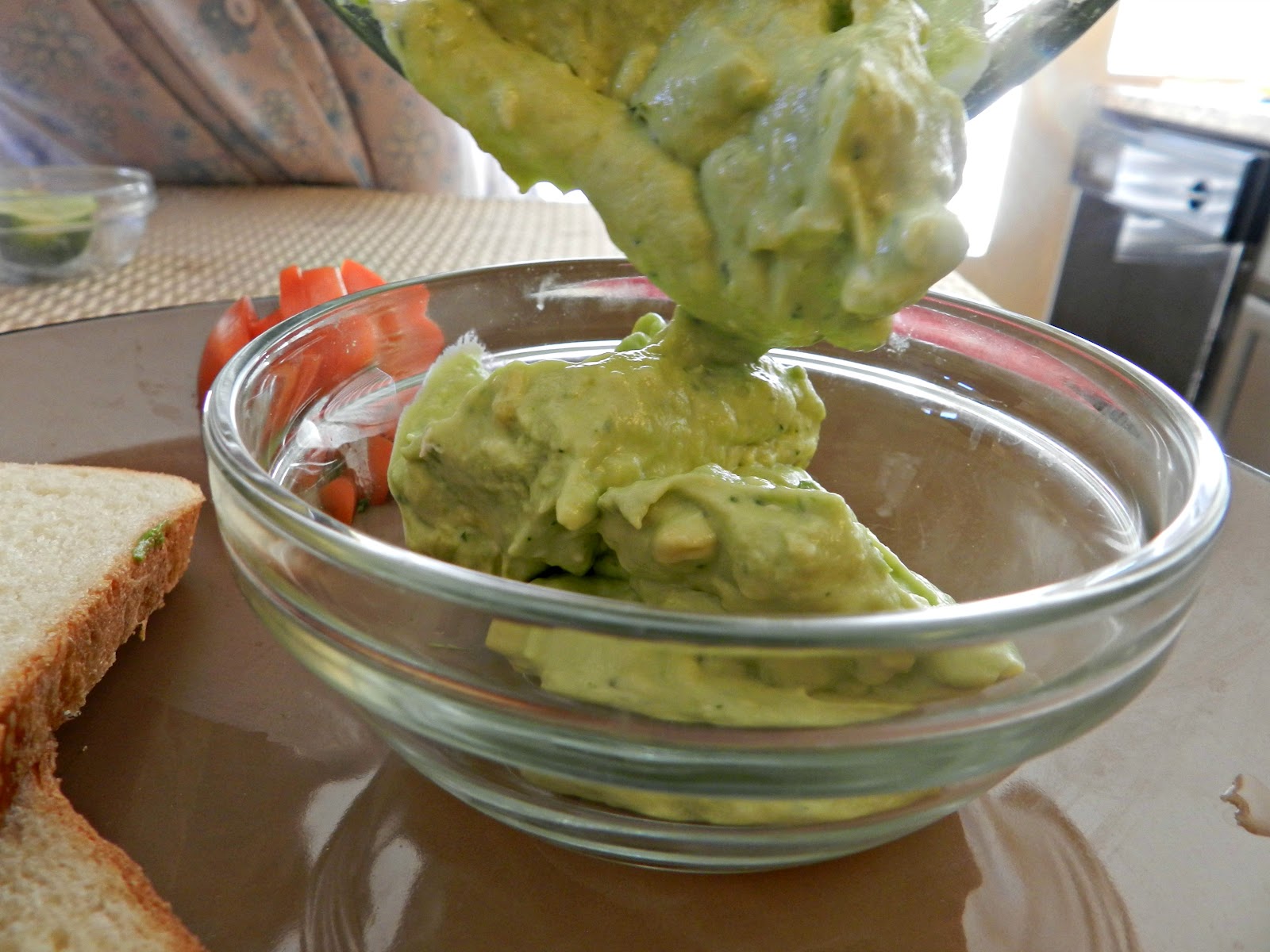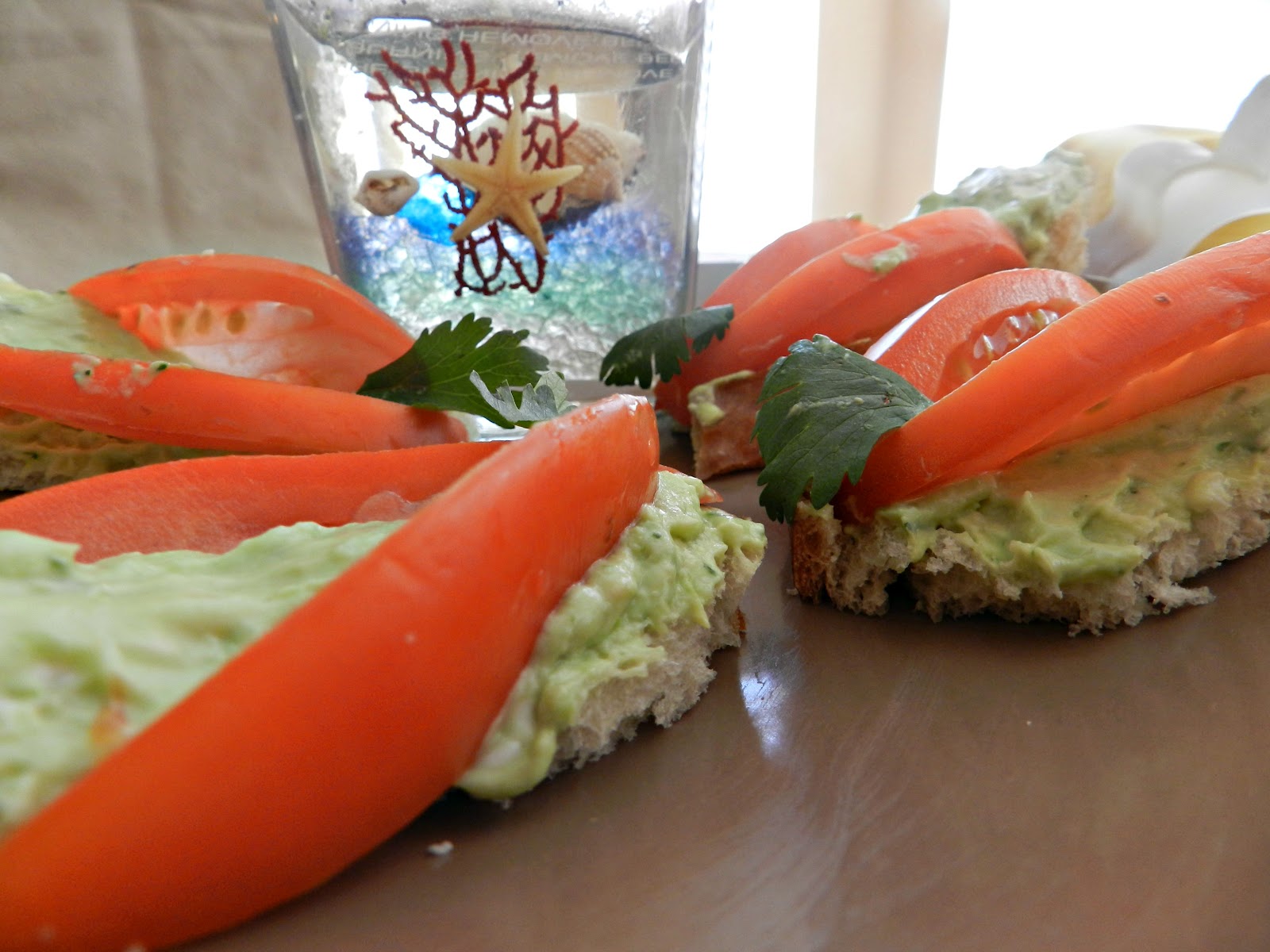 Licuar el aguacate con el queso crema, el cilantro y el chile y al final agregar la sal y el jugo del limón. Este es un “secretito” de la abuela quien lo usaba para que el aguacate mantuviera su color y consistencia. Posteriormente, hay que darle el toque artístico y moldear el pan en forma de sandalias. Para lograrlo, dibujé en una hoja de papel las sandalias y de ahí me base para cortar el pan. El toque final fue ubicar las rabanadas de jitomate sobre las “sandalias” y el cilantro en la punta de las mismas. Y listo!