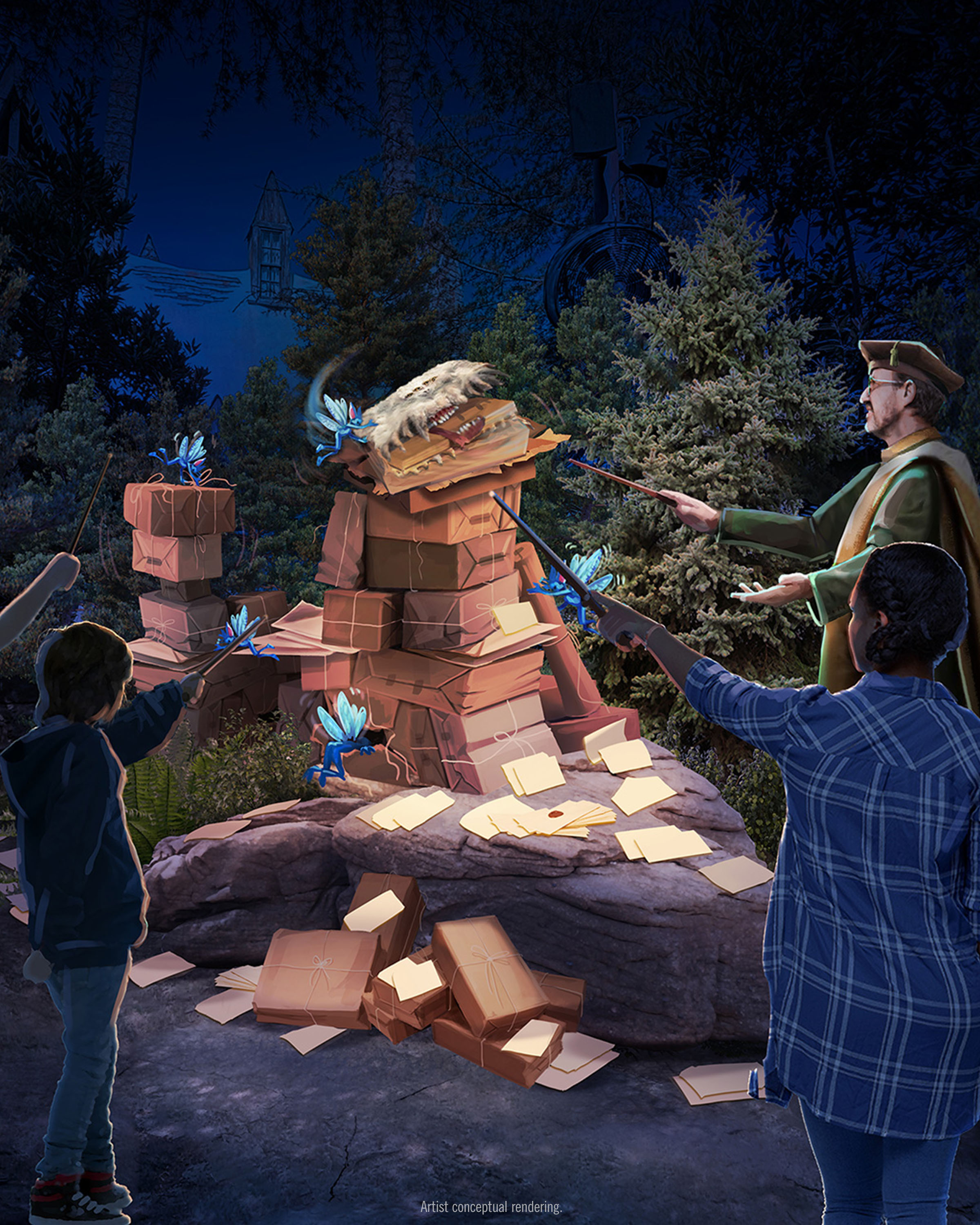 Con la guía de un profesor de Criaturas Mágicas de Hogwarts, los visitantes se embarcarán en una emocionante aventura a pie por el Bosque Prohibido, donde se encontrarán con una gran variedad de criaturas mágicas y bestias conocidas, desde duendes hasta búhos y arañas, además del infame Libro de los Monstruos, mientras avanzan en una audaz misión nocturna. Una serie de obstáculos interrumpirán su camino, desafiándolos a reunir su valentía y sus habilidades mágicas para rescatar al Hipogrifo.